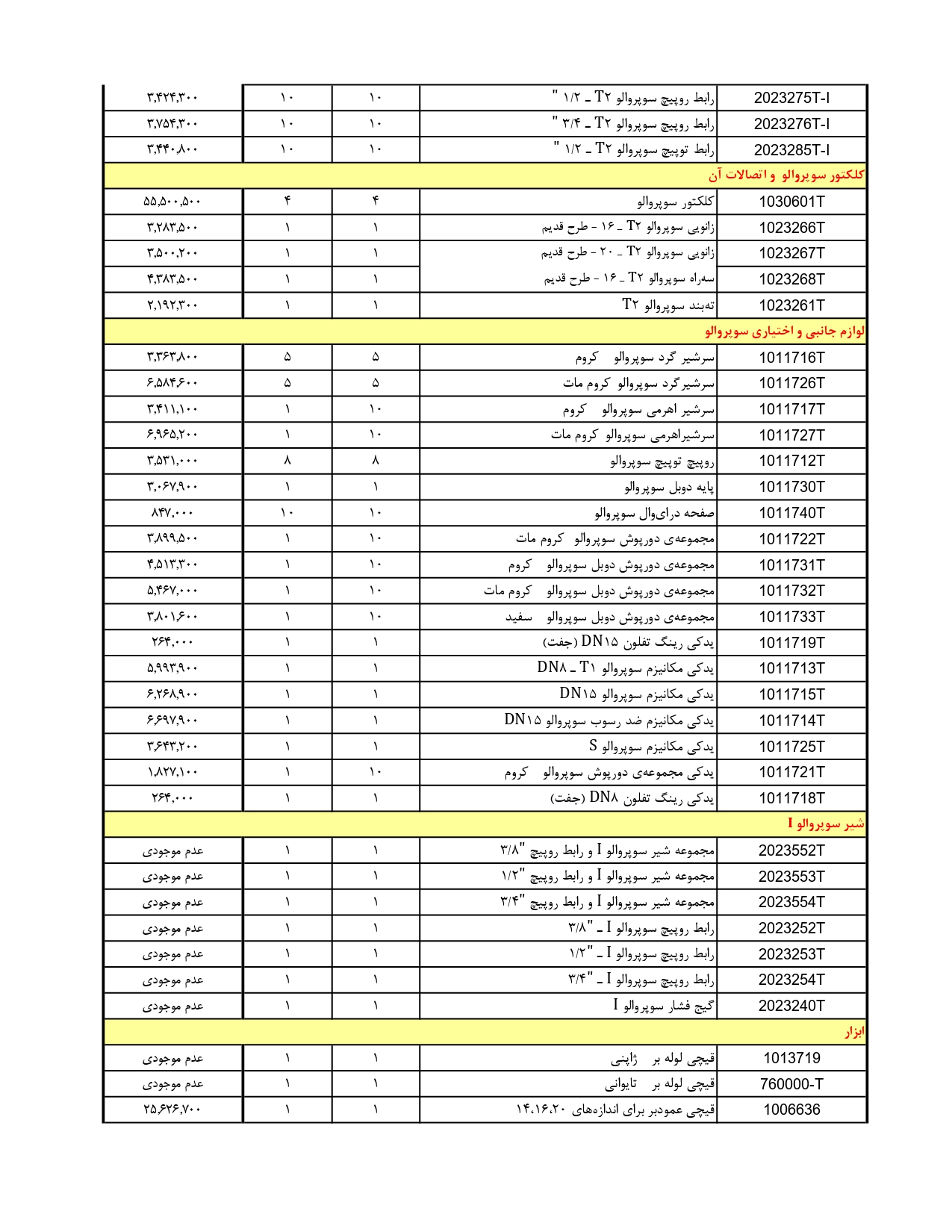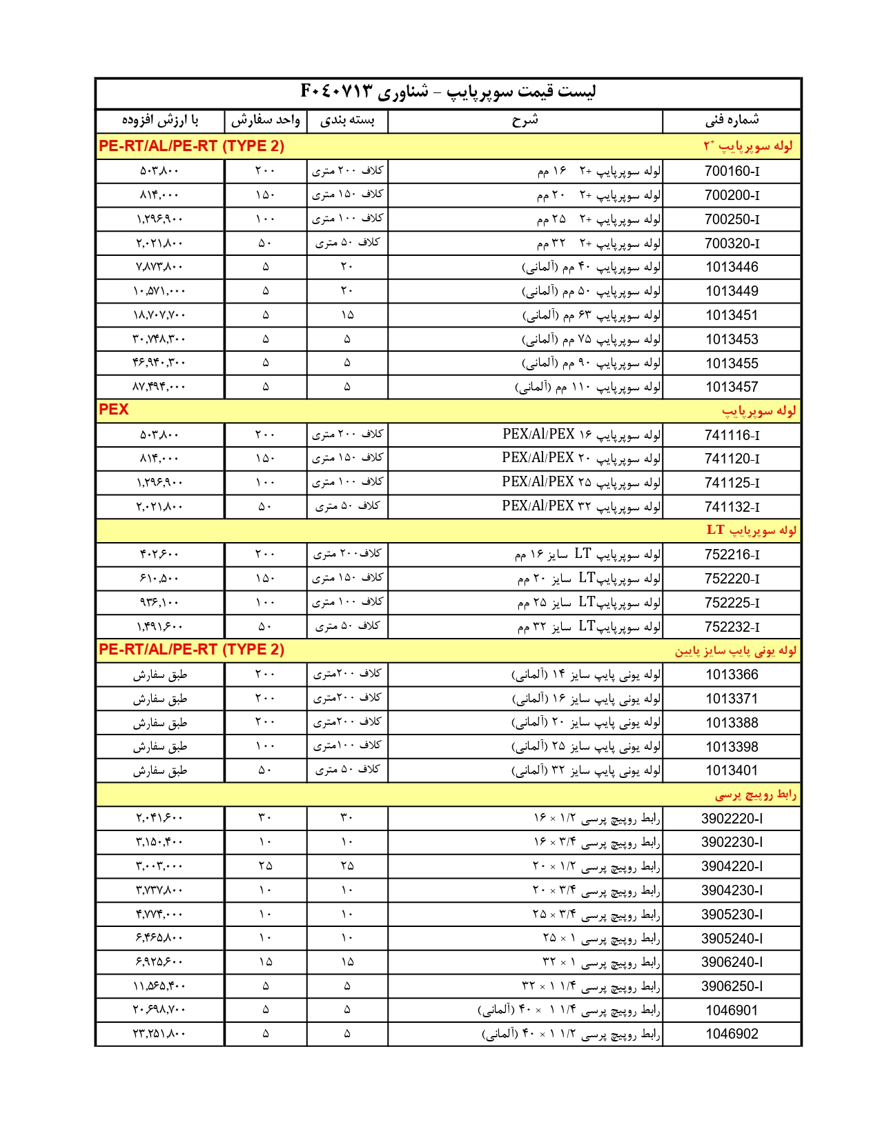آخرین لیست سوپرپایپ 1404 (جدید)